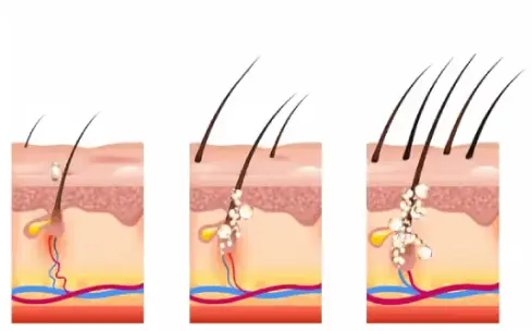 Damage to hair follicles is most often caused by bacterial or fungal infections. These infections cause itching and hair loss on the scalp by activating the body’s natural defense mechanisms and attacking the hair follicles where the pathogens are usually located. The hair follicles enlarge due to pus and dead biological matter, resulting in characteristic swelling and knots.