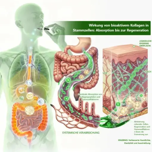 Nachdem Sie ein oral einzunehmendes Hautnahrungsergänzungsmittel einnehmen, werden seine aktiven Inhaltsstoffe durch den Darm aufgenommen und gelangen in den Blutkreislauf. Dies initiiert eine ganzheitliche “Hautverjüngungsreise”. Der Blutkreislauf transportiert diese hochaktiven Nährstoffmoleküle zur Dermis, wo sie gezielt Hautzellen—Fibroblasten—ansprechen und ihnen biologische Signale senden, um die Produktion zu beschleunigen. Dies stimuliert direkt die Synthese von jugendunterstützenden Substanzen wie Kollagen und Elastin, während es gleichzeitig das innere Hydratationsnetzwerk der Haut stärkt. Zusätzlich unterstützt das Ergänzungsmittel den Körper bei der Bekämpfung von oxidativen Schäden, die durch den täglichen Stoffwechsel verursacht werden. Dies stellt einen biologischen Prozess dar, der die Hautgesundheit und Vitalität systematisch von innen heraus verbessert.