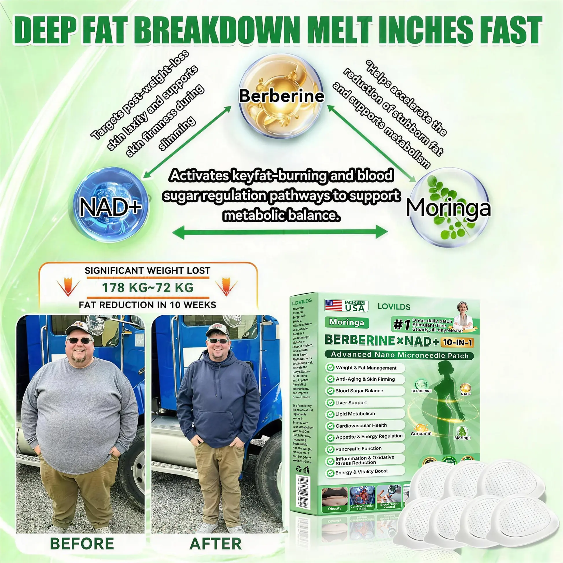 LOVILDSยฎ Moringaยท Berberine x NAD+ 10-in-1 Advanced Nano Microneedle Patch: 98% Absorption Rate, Transforming Weight, Liver, Gut & Skin Health
